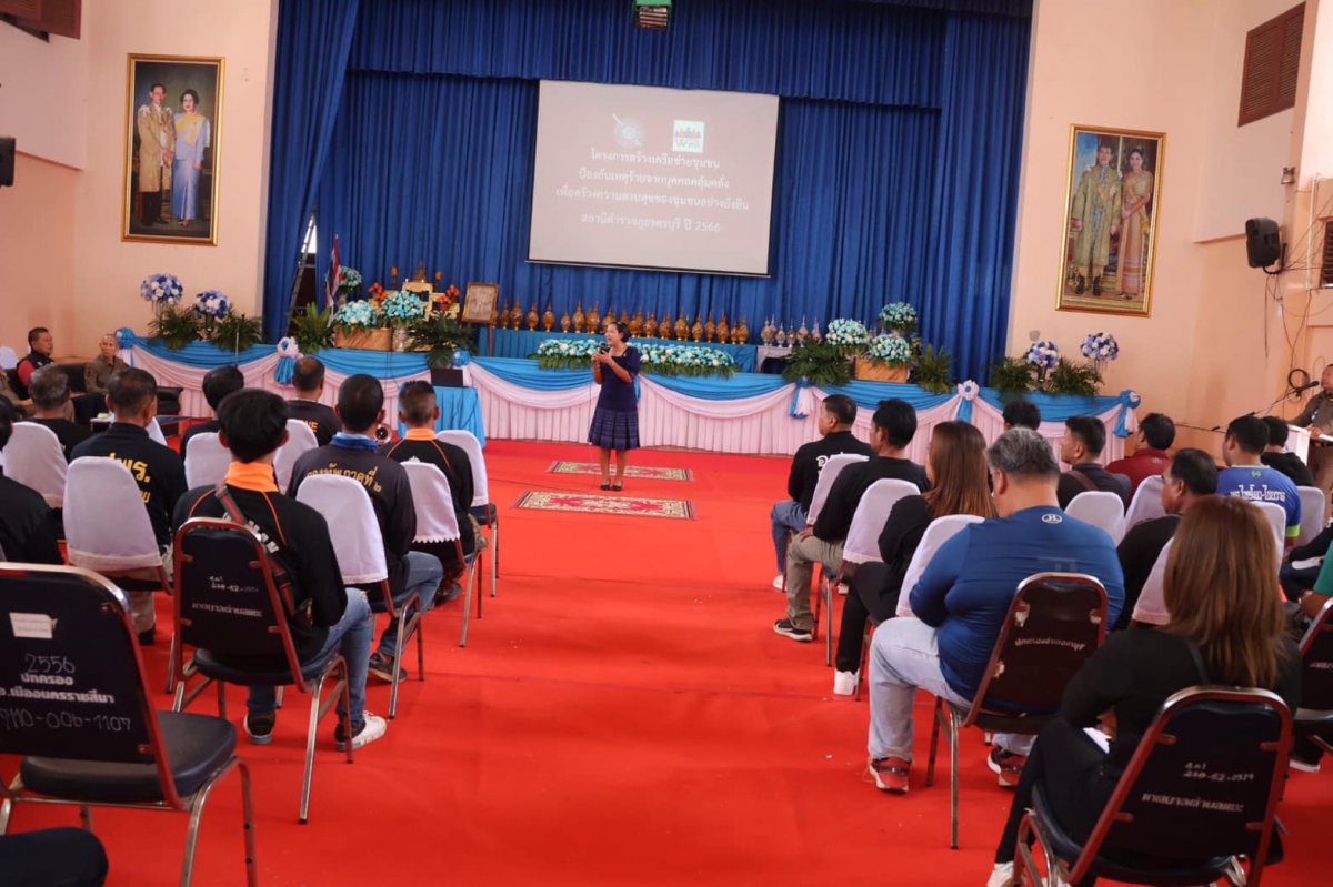 โครงการเครือข่ายชุมชนป้องกันเหตุร้ายจากบุคคลคลุ้มคลั่งเพื่อสร้างความสงบของชุมชนอย่างยั่งยืน สถานีตำรวจภูธรครบุรี 2566 ณ ศาลาประชาคมอำเภอครบุรี